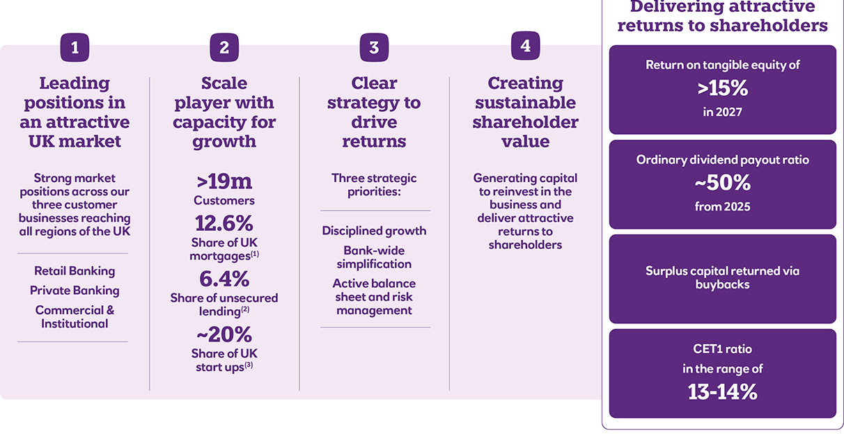 We have a strong track record of returning surplus capital to shareholders and remain committed to a ~50% payout ratio with capacity for buybacks whilst operating within our 13-14% CET1 ratio target range.